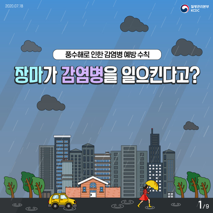 방역당국은 “최근 장마가 지속되고 있다“며 ”특히 집중 호우로 인한 수해가 발생함에 따라, 감염병 예방을 위해 안전한 물과 음식, 개인위생 수칙을 지켜야 한다“고 당부했다.
