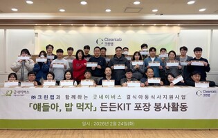 [메가경제=심영범 기자]생활용품 기업 크린랩은 지난 24일 서울 송파구 브니엘교회에서 굿네이버스 서울남부사업본부와 함께 결식 우려 아동을 위한 도시락 키트 포장 봉사활동을 진행했다고 25일 밝혔다. 이번 활동은 굿네이버스의 결식아동 식사지원사업 ‘얘들아, 밥 먹자’의 일환이다. 방학 및 주말 기간 중 발생하는 돌봄 공백에 따른 식사 결손을 완화하기 위해 마
