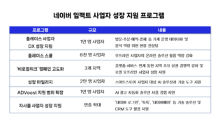 [메가경제=황성완 기자] 네이버는 국내 인공지능(AI) 생태계 성장과 육성을 지원하는 ‘임팩트 프로그램’의 일환으로, 10여년간 축적해온 온라인 DX 성장 경험을 오프라인 및 사업자 AX 생태계로 본격 확장한다고 16일 밝혔다. 이와 함께 올해 상반기부터 오프라인 사업자 중심의 새로운 성장 지원 프로그램을 시작하고, 사업자 AX 지원 대상의 범위와 규모도