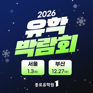 [메가경제=양대선 기자] 올해의 브랜드 대상 18년 연속 수상의 유학전문기업 종로유학원이 2026년 새해 첫 유학박람회를 내년 1월 3일 서울 코엑스와 이달 27일 부산 종로유학원에서 각각 개최한다고 12일 밝혔다. 2026년 가장 빠르게 진행되는 국내 최대 규모의 유학박람회를 통해 세미나 참석으로 기초 정보 수집 및 전문가와 1:1 상담으로 유학 계획을