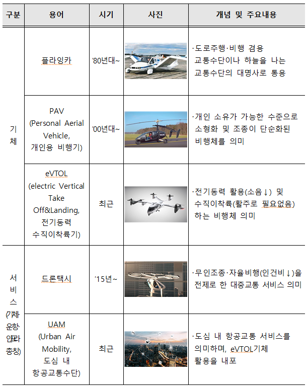 ▲ 주요 용어별 설명. [출처= 국토교통부 '한국형 도심항공교통(K-UAM) 로드맵' 중] |