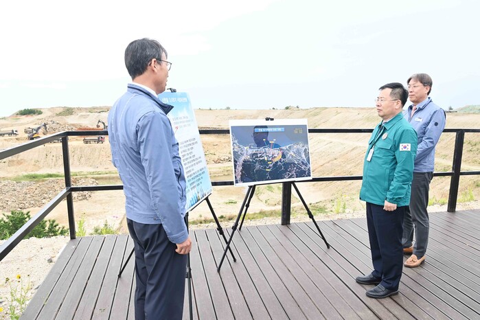 | ▲ 강경성 산업통상자원부 2차관이 5월 18일 경상북도 울진군에 위치한 한국수력원자력 한울원자력본부를 방문해 신한울 3ㆍ4호기 건설 현장을 찾아 건설 진행현황과 안전관리 상황을 점검하고 있다. [산업통상자원부 제공] |