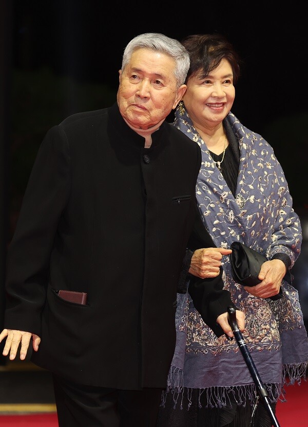 ▲ 임권택 감독-배우 채령 부부가 5일 오후 부산 해운대구 영화의전당에서 열린 제27회 부산국제영화제 개막식에 참석하고 있다. [부산=연합뉴스] |