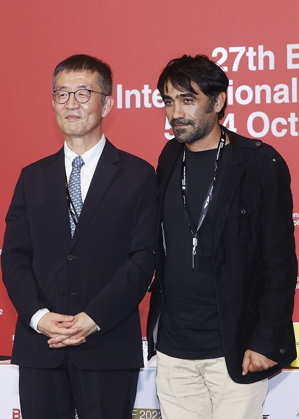 ▲ 하디 모하게흐 감독(오른쪽)과 허문영 집행위원장이 5일 오후 부산 해운대구 영화의 전당 중극장에서 열린 제27회 부산국제영화제(BIFF) 개막작 '바람의 향기' 기자회견에서 포즈를 취하고 있다. [부산=연합뉴스] |