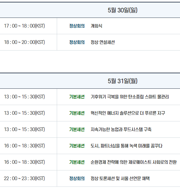 ▲ '2021 P4G 서울 녹색미래 정상회의' 일정. [출처=2021 P4G 서울 정상회의 홈페이지] |