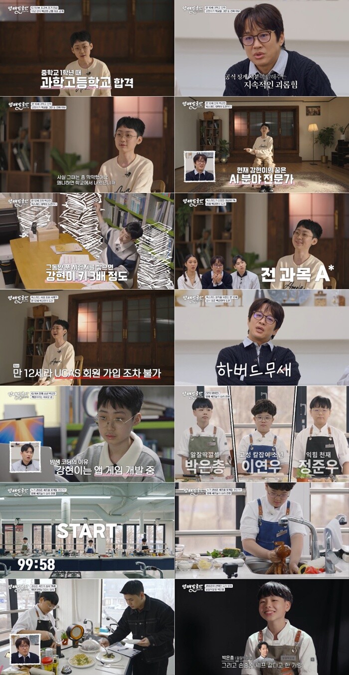 가장 먼저 ‘역대 영재 중 최고 IQ’로 화제를 모은 백강현의 이야기가 펼쳐졌다. ‘IQ 164’인 백강현은 41개월의 나이에 미지수 X를 활용한 방정식을 만들어 전 국민을 놀라게 한 바 있다. 10년 만에 다시 카메라 앞에 선 백강현은 어느덧 훌쩍 자란 모습으로 등장해 반가움을 안겼다. 그는 만 7세에 초등학교 5학년으로 조기 진급했으며, 만 9세에 중학교 입학, 만 10세에는 과학고에 진학하는 등 누구보다 빠른 속도로 성장했다. 하지만 감당해야 했던 현실의 무게도 컸다. 과학고 재학 시절 학교폭력 피해로 결국 자퇴를 선택한 것. 이와 관련해 백강현은 “그때 굉장히 많이 울었다. 자퇴를 하고 싶지 않았다. 지금도 과학고를 모교로 생각하고 있다. 당시 학교를 나오게 돼 솔직히 좀 막막했다”고 털어놨다.