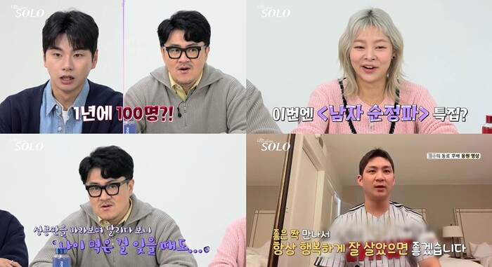 뒤이어 ‘겨울연가’의 ‘욘사마’(배용준)를 연상케 하는 댄디한 코트 차림의 솔로남, ‘으른 섹시’ 박희순과 닮은 솔로남, 옆모습이 박보검과 닮아 ‘0.5초 박보검’으로 불리는 솔로남이 연이어 등장해 ‘솔로나라 14번지’를 후끈 달군다.