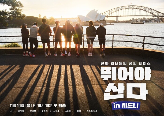 오는 11월 10일과 17일, 2주간 방송되는 MBN ‘뛰어야 산다 in 시드니’는 시즌1 우승 특전으로 주어진 세계 7대 마라톤 대회 ‘호주 시드니 마라톤’ 출전을 배경으로, 션, 이영표, 양세형, 고한민, 이장준, 슬리피, 율희, 권은주 감독이 세계무대에 도전해 진짜 러너로 성장해가는 여정을 담는다.