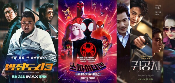 ▲ 영화 '범죄도시3', '스파이더맨', '귀공자'의 공식 포스터. [사진=각 배급사 제공] |