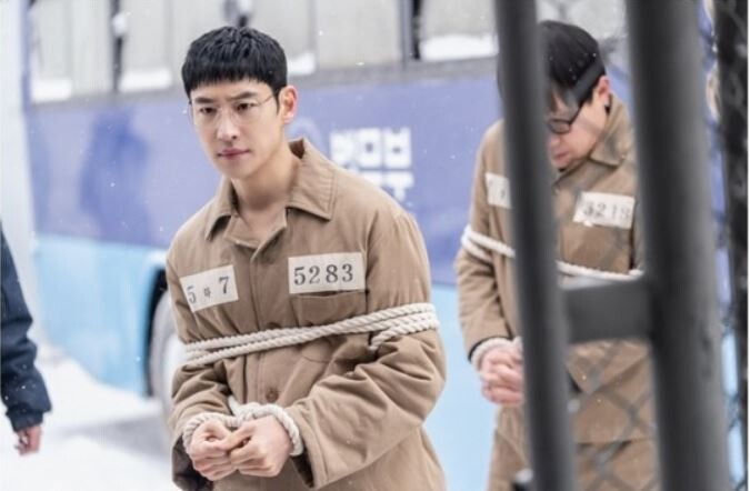 이 가운데 공개된 스틸 속 도기는 주임즈와 함께 교도소에 입소한 모습이다. 도기는 5283 죄수복을 입고 포승줄로 온몸을 결박당한 채 교도관의 인솔에 따라 이동하고 있는데 바짝 날이 선 눈빛이 긴장감을 높인다. 또한 다른 죄수들과 눈을 마주치지 않으려 필사의 노력을 하고 있는 주임즈의 주눅든 모습이 교도소의 삼엄한 분위기를 엿볼 수 있게 한다.