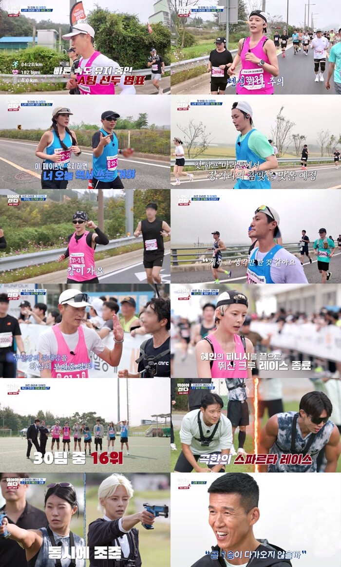 8일(월) 방송된 MBN ‘뛰어야 산다 시즌2’ 3회에서는 ‘2025 MBN 전국 나주 마라톤 대회’을 통해 첫 단체전 레이스에 나선 ‘뛰산 크루’의 치열한 경쟁과 극적인 드라마가 펼쳐졌다. 사전 훈련을 통해 구성된 A팀 이영표·이기광·정혜인, B팀 양세형·유선호·임수향, C팀 최영준은 경험과 실전 차이를 극복하며 팀워크로 한계를 넘나드는 레이스를 선보여 시청자들의 뜨거운 응원을 받았다.
