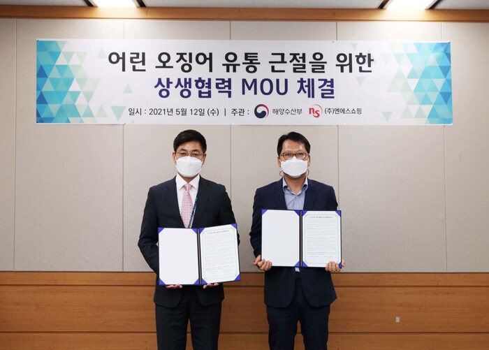 NS홈쇼핑이 12일 해양수산부와 ‘어린 오징어 유통 근절을 위한 상생협력’ 업무협약을 맺었다.