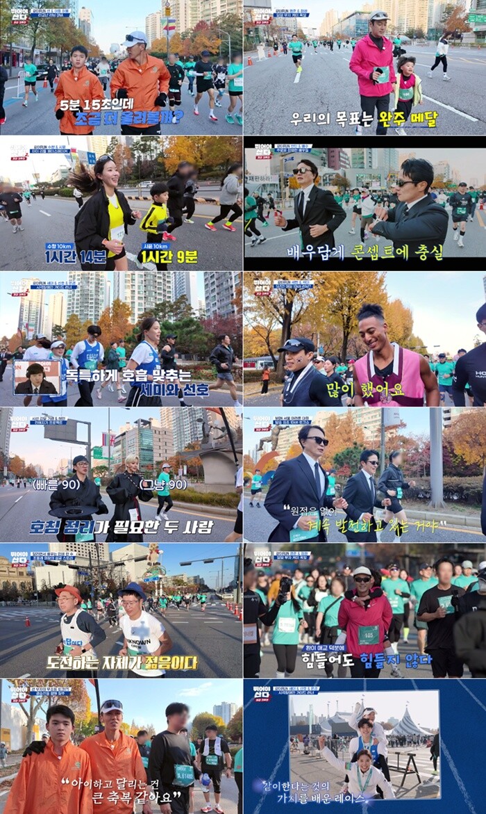 이영표는 풀코스를 85회 완주하고, 국토 5228km를 달려 ‘대동RUN지도’를 완성한 조웅래 회장과 ‘인생 토크’를 나눴다. 이영표는 마라톤 같은 조웅래 회장의 인생 여정을 들으며 깊이 공감했고, “중요한 건 (내 앞의 길이) 오르막이냐 내리막이냐가 아니라 그 길을 바라보는 마음의 각도인 것 같다”는 깨달음을 전했다. 두 사람 56분 56초로 결승선을 통과해 뜨거운 박수를 받았다. 양세형은 러닝 크리에이터 Zay와 언어 장벽을 넘어 ‘펀런’을 즐기며 55분 06초로 완주했다. 임수향도 9세 러너 시윤이와 단짝 호흡으로 1시간 08분 05초라는 개인 최고 기록을 세웠다.