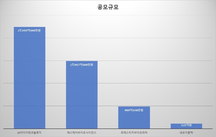 공모 규모로 보면 SK아이이테크놀로지가 2조2457억5000만원을 차지했다.