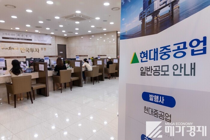 | ▲한국투자증권 지점에서 고객이 현대중공업 청약 상담을 받고 있다. [사진=한국투자증권 제공] |