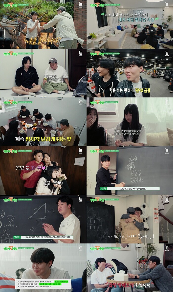 14일 방송된 티캐스트 E채널 예능 프로그램 ‘인생 때려잡기: 정승제 하숙집’(이하 ‘정승제 하숙집’) 8회에서는 ‘김장 데이’ 후 이어진 막걸리 파티와, 하숙생들의 진로를 상담해주는 ‘인생 수업’ 현장, 하숙생들의 첫 ‘자유시간’, 수학 전공생들의 강의 배틀이 펼쳐져 웃음과 공감, 울림을 선사했다.