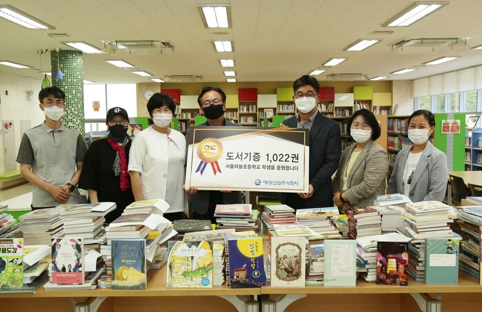 이날 애경산업은 마포구에 위치한 서울하늘초등학교에 청소년이 꼭 읽어야 할 도서 1000여권을 전달했다.