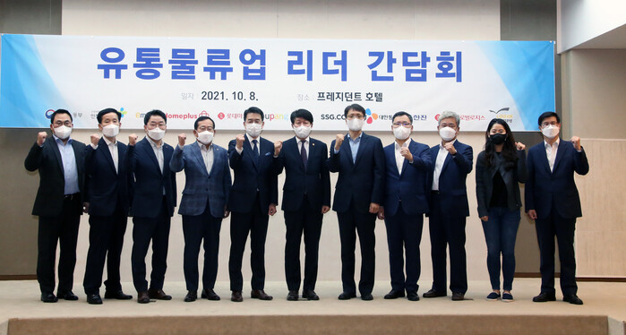 이날 자리엔 이마트, 홈플러스, 롯데마트, 쿠팡, 컬리, SSG.COM, CJ대한통운, 한진택배, 롯데택배, 로젠택배 등 주요 유통·물류사 CEO와 관계자가 모두 모였다.