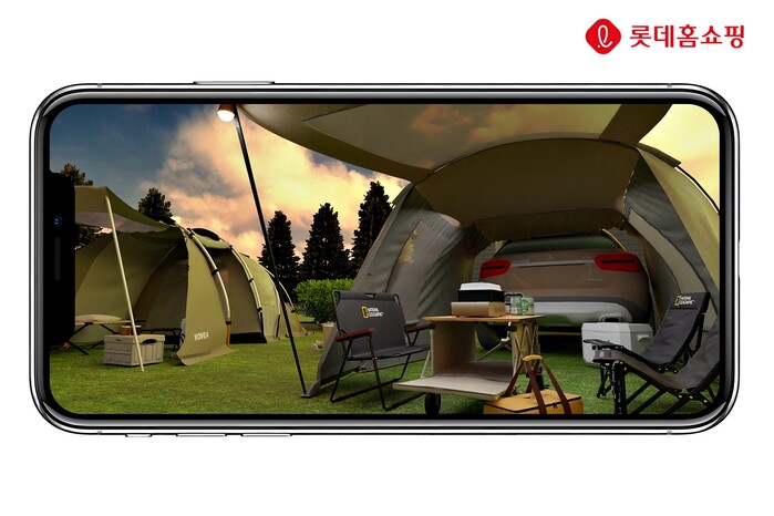 고객은 롯데홈쇼핑 모바일앱을 통해 가상으로 연출된 캠핑장을 둘러보며 캠핑 분위기를 간접 체험하고, 전시된 상품의 상세 정보를 확인한 후 구매도 할 수 있다.