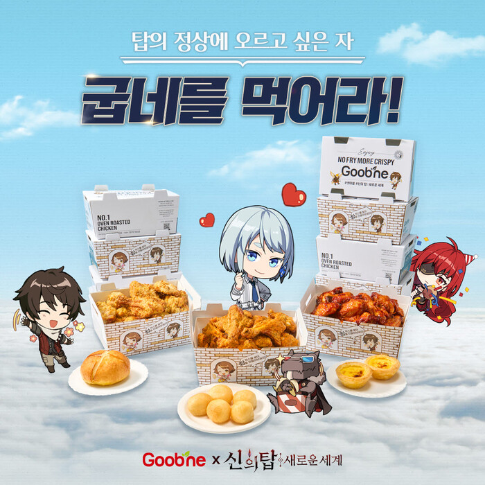 이번 양사 협업으로 굽네에서는 '신의 탑: 새로운 세계' 세트 3종을 출시했다. 해당 세트는 ▲라쿤밤 세트A(고추 바사삭+모짜치즈볼)▲라쿤밤 세트 B(남해마늘 바사삭+바게트볼)▲화련 세트(볼케이노+에그타르트)로, '신의 탑: 새로운 세계' 전용 패키지와 함께 제공된다.