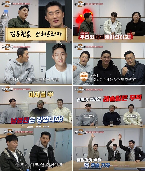 7개팀의 솔직 속내가 담긴 티저가 벌써부터 화제를 모으는 가운데, 이번 ‘천하제일장사2’는 격투팀(김동현, 명현만, 정다운), 농구팀(현주엽, 우지원, 박광재), 축구팀(송종국, 김용대, 백지훈), 피지컬팀(조진형, 마선호, 김경진), 레슬링팀(남경진, 황도현, 김형원), 동계팀(모태범, 서영우, 강한), 그리고 지난 시즌1 우승팀이었던 야구팀(양준혁, 홍성흔, 최준석)이 출격한다. 이경규, 배성재, 이만기, 김기태 4인방은 흥미진진한 경기 중계와 예리한 해설로 시청자들의 재미를 배가시킬 전망이다.