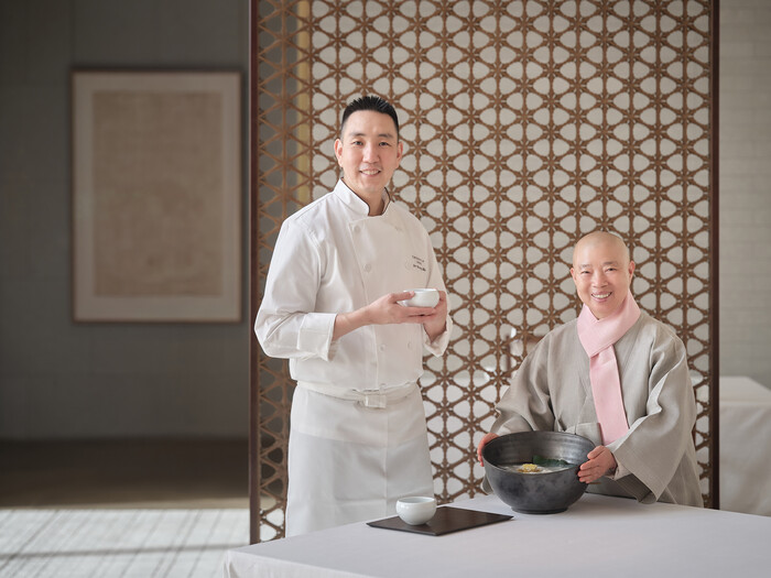포핸즈 갈라 디너에서는 구억배추, 들깨, 토종쌀 등 주요 식재료를 활용했으며, 정관스님과 라연 셰프가 재료 본연의 풍미와 식감을 살린 메뉴를 선보였다.