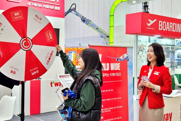 ‘2025 대한민국 미래공항 엑스포’에서 티웨이항공은 홍보 부스를 찾는 방문객들을 대상으로 대구발 운항 노선 및 소노호텔앤리조트 연계 홍보와 항공권 할인 쿠폰 배포, 룰렛 돌리기 이벤트 등 프로그램을 진행했다.