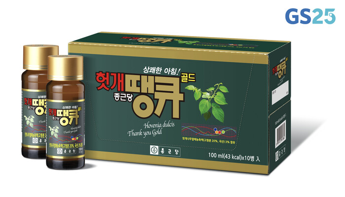 [메가경제=이석호 기자] 종근당(대표 김영주)의 숙취해소음료 ‘헛개땡큐골드’가 오는 2일부터 GS25에서도 판매된다.