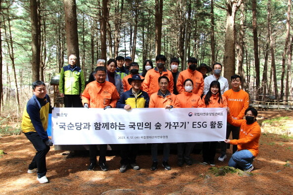 ▲ 국순당과 국립자연휴양림관리소는 지난 12일, 강원도 횡성 청태산에서 '국민의 숲' 가꾸기 ESG 활동을 진행했다 [사진=국순당] |