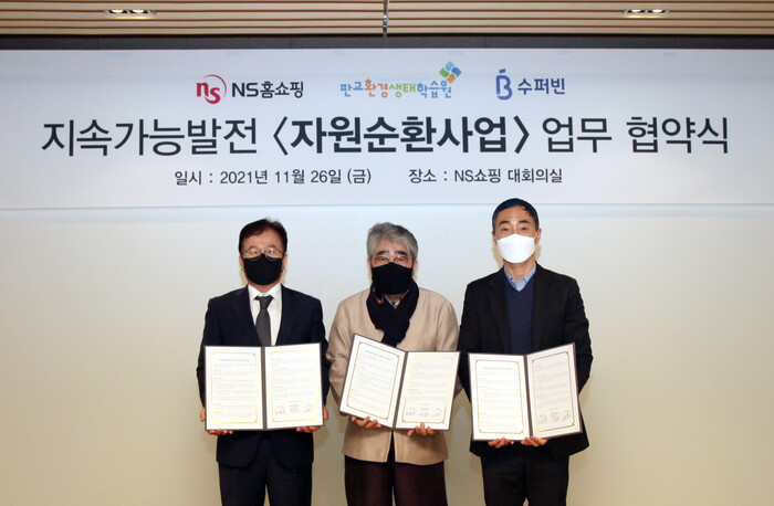 NS홈쇼핑이 자원순환사업을 위해 수퍼빈㈜, 판교환경생태학습원과 3자간 업무협약을 체결했다.
