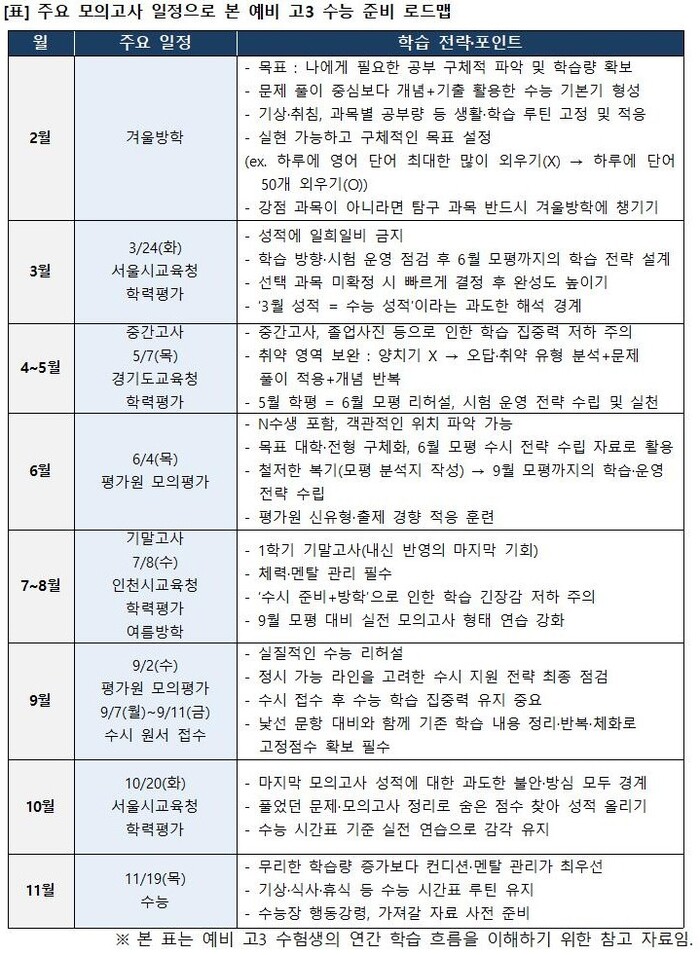 | ▲ 수능 준비 로드맵 [사진=이투스교육평가연구소] |