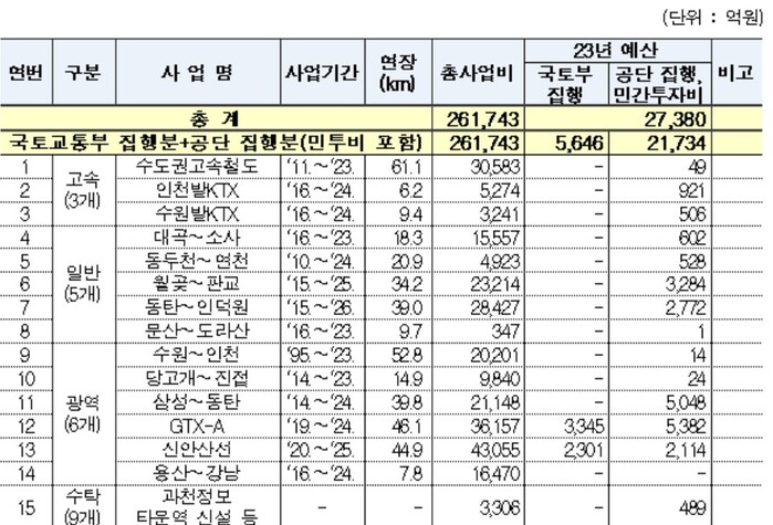 수도권 내 고속철도, 일반철도 건설사업 계속
