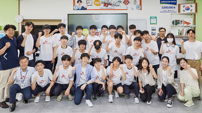 ▲ 기념촬영하는 삼일공업고 학생들과 SK하이닉스 구성원들. [사진=SK하이닉스] |