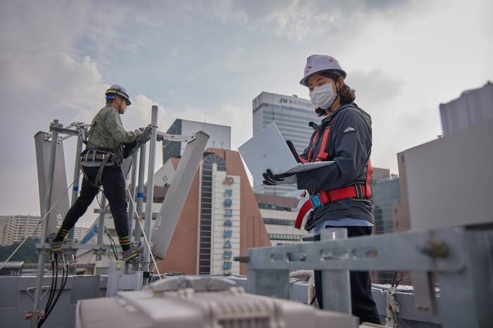 ▲SK텔레콤과 SK오앤에스 엔지니어가 고속터미널역 인근에서 통신장비를 점검하고 있다. [사진=SKT] |