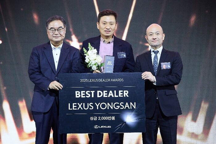 [메가경제=양대선 기자] 렉서스 공식 딜러 천우모터스(대표 정세림)가 지난 10일 개최된 토요타코리아가 선정하는 ‘2025 베스트 딜러’ 시상에서 1등으로 선정되어 통산 5회 수상이라는 금자탑을 쌓아 올렸다. 이는 렉서스 8개 딜러사 중 최다 수상 기록이다.