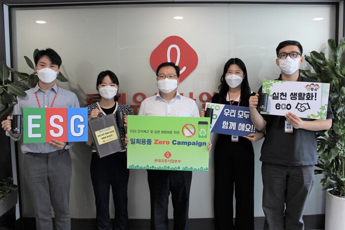 롯데유통사업본부(대표 김용기)가 전 직원의 ESG 인식제고 및 생활화를 위해 일회용품 Zero 캠페인을 시행한다.