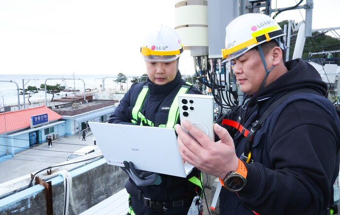| ▲LG유플러스 임직원들이 강원 강릉시 정동진 인근에서 네트워크 장비를 점검하고 있다. [사진=LG유플러스] |