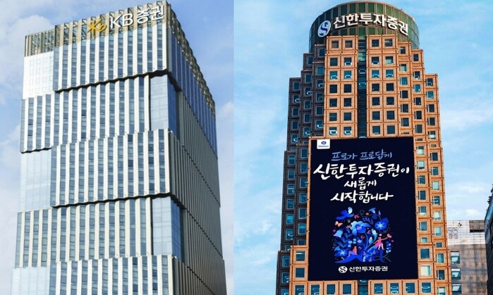 ▲ KB증권(왼쪽)과 신한투자증권 사옥 전경 [사진=각사 제공] |