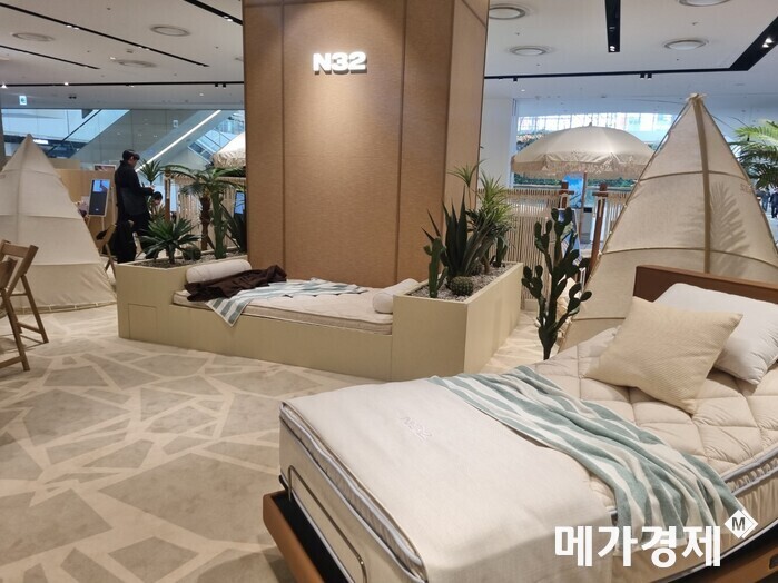 한편 현장에서는 매트리스를 체험한 뒤 SNS 인증을 완료한 방문객을 위한 이벤트도 진행 중이다. 참여자에게는 N32 로고가 새겨진 유리병 생수가 제공된다. 주말 오후 3시에는 럭키드로우 이벤트를 통해 반려견용 매트리스와 장우산 등을 증정한다.