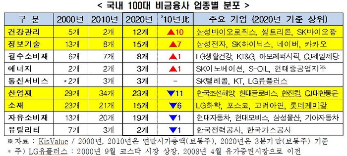 10년새 헬스케어 2개→10개로, IT 8개→15개로 기업수 증가