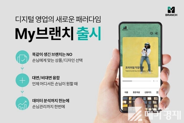 불특정 다수 손님에게 똑같은 상품과 서비스를 제공했던 기존 비대면 서비스와 달리, 'My브랜치'는 ▲기업 브랜치 ▲아파트 입주민 브랜치 ▲각종 커뮤니티 브랜치 등 다양한 손님군별 특성에 맞춘 상품을 구성해 특화된 금융서비스 및 컨텐츠를 영업점 직원이 직접 제공할 수 있다는 점에서 차별화 된다.