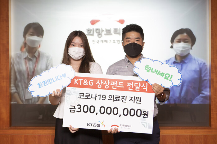 먼저 KT&G는 임직원과 회사가 함께 조성한 상상펀드를 활용해 전국재해구호협회에 3억원을 전달했다.