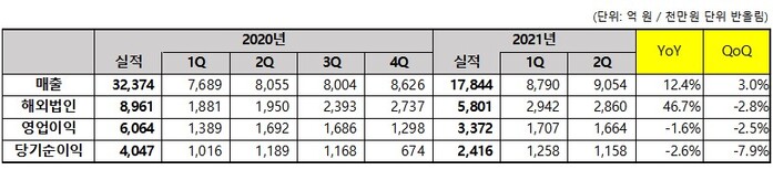 올 상반기는 매출 1조7844억원으로 전년동기대비 13.3% 증가했고, 영업이익은 3372억원으로 9.5% 증가했다.