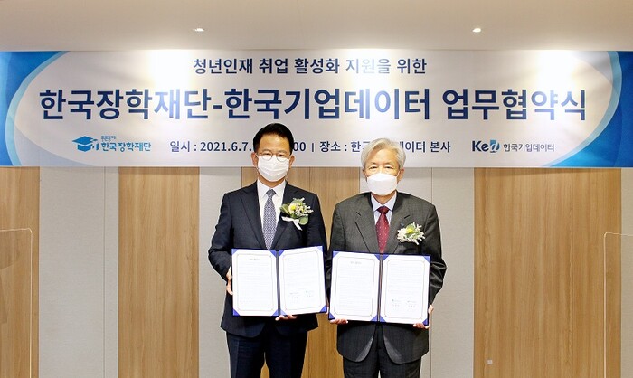 한국기업데이터는 지난 7일 서울 여의도 본사에서 한국장학재단과 ‘청년인재 취업 활성화 지원을 위한 업무협약’을 체결했다.