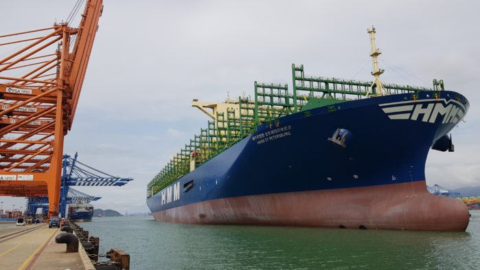 HMM에 따르면 11일 삼성중공업에서 인도받은 12호선 ‘HMM 상트페테르부르크(St Petersburg)’호가 부산을 시작으로 중국 등을 거쳐 유럽으로 향할 예정이다.