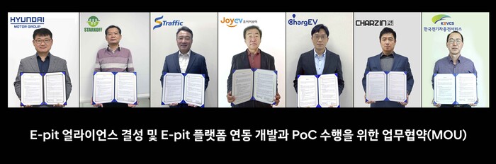 현대차그룹은 18일 스타코프, 에스트래픽, 제주전기자동차서비스, 차지비, 차지인, 한국전기차충전서비스 등 국내 충전사업자 6개 회사와 ‘E-pit(이피트) 얼라이언스 결성 및 E-pit 플랫폼 연동 개발과 신기술 검증수행을 위한 업무협약’을 각각 체결했다고 밝혔다.