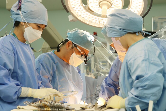 ▲김준범 서울아산병원 심장혈관흉부외과 교수가 대동맥판막치환술을 시행하고 있다[사진=서울아산병원] |