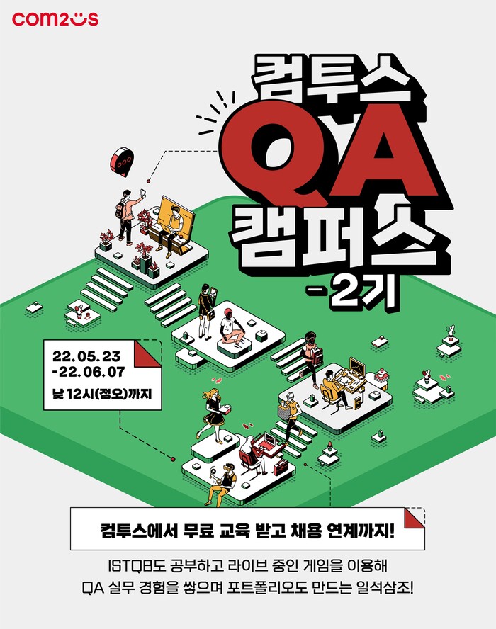 컴투스는 게임 QA 분야의 전문가 양성을 위해 무료 교육과 채용 연계 기회를 제공하는 '컴투스 QA 캠퍼스' 2기를 모집한다고 24일 밝혔다.