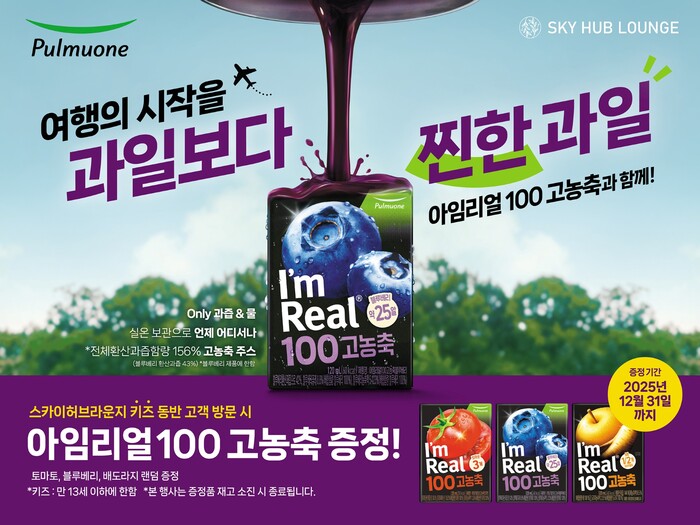 이번 프로모션은 블루베리, 토마토, 배도라지 3종 중 한 가지를 랜덤으로 제공하며, 가족 단위 여행객에게 건강하고 즐거운 라운지 경험을 선사하기 위해 마련됐다. 인천국제공항 제1터미널, 제2터미널, 탑승동 내 스카이허브라운지 5개 매장에서 올해 연말까지 진행된다.