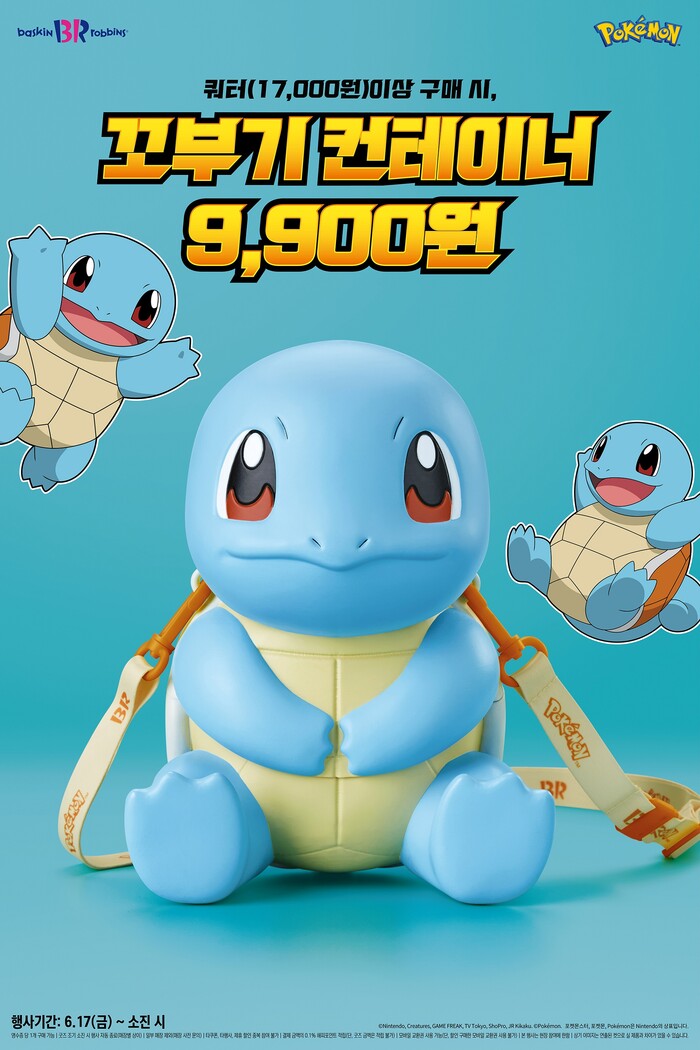 SPC그룹 배스킨라빈스가 포켓몬스터와 협업해 ‘꼬부기 컨테이너’를 출시한다고 10일 밝혔다.